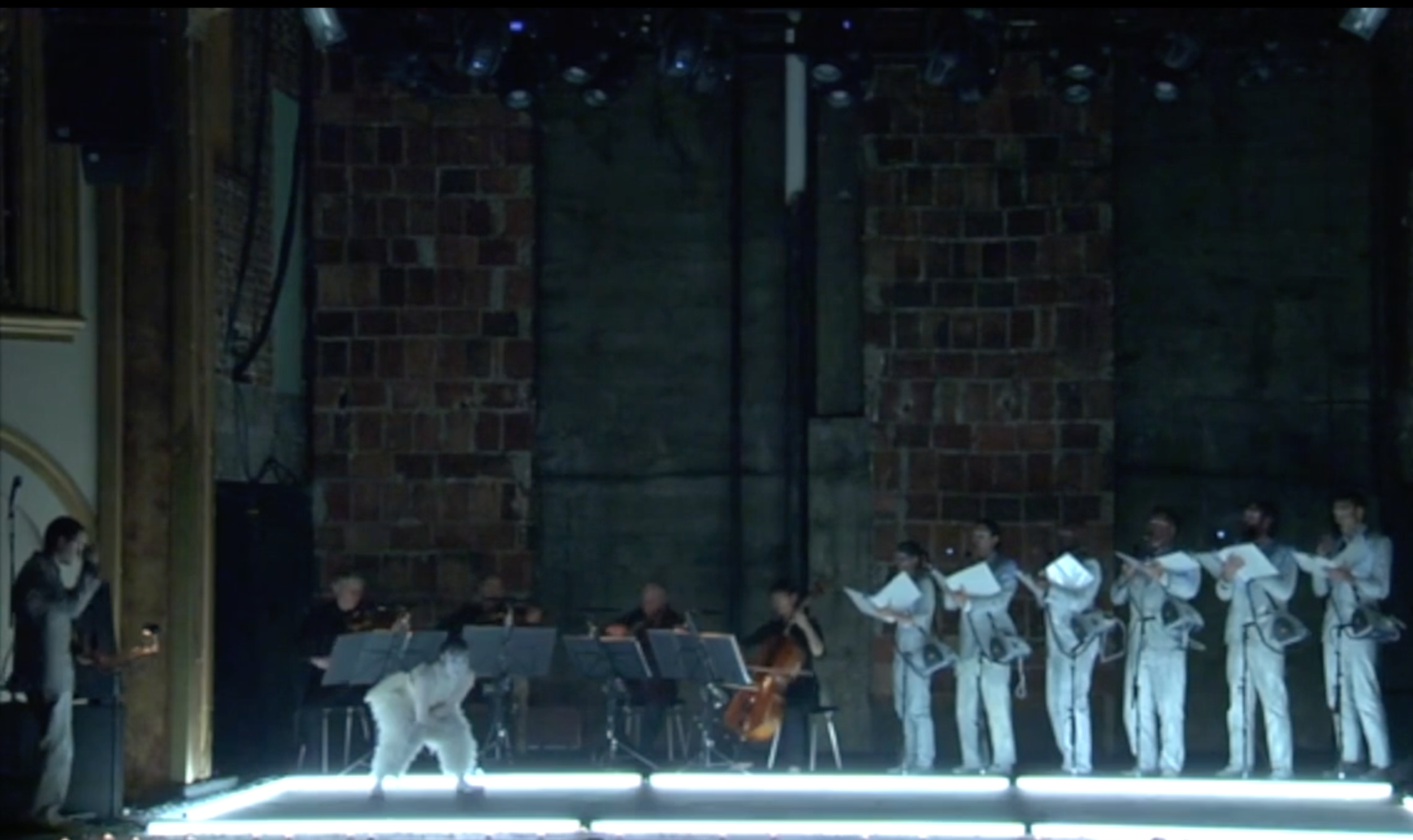 (2012)Degenerate Art Ensemble was commissioned by director Robert Wilson and the Watermill Center a Laboratory for Performance to create their own interpretation of Wilson and Phillip Glass' seminal work Einstein on the Beach. This was the first time ever that Wilson and Glass permitted new interpretations of this work. The production took place at the Baryshnikov Arts Center in New York, and celebrated the 35th anniversary of Einstein on the Beach.